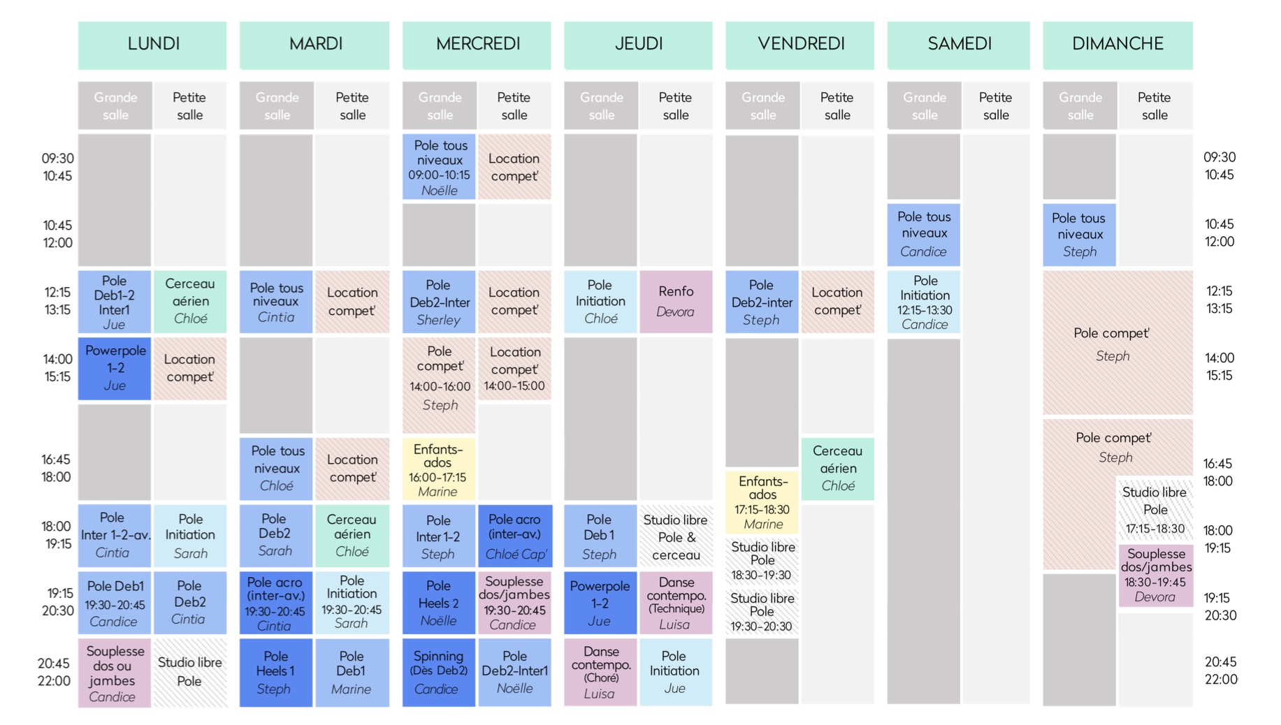 This schedule can be exceptionally changed, please be sure to check the classes schedule when you book on the app.